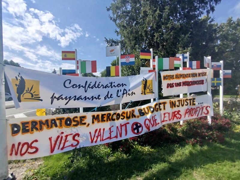 06.11.2025 - Le 10 septembre, la Conf' de l'Ain a mené une action "Contre burger paysan" face au McDo du Carrefour de l'Europe à Bourg-en-Bresse !